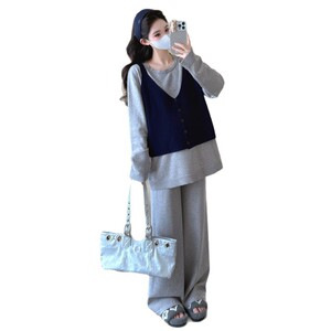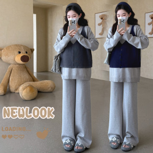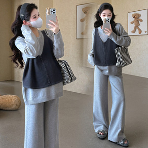 孕妇秋冬装2025新款套装时尚外穿假两件卫衣冬季针织上衣两件套女