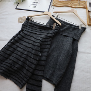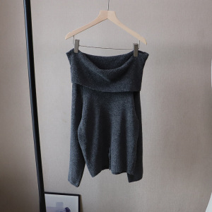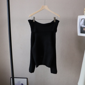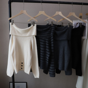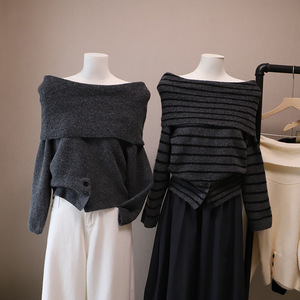 [比正]2025秋冬新韩版时尚好看一字肩条纹显瘦百搭套头毛衣女5056
