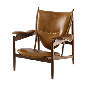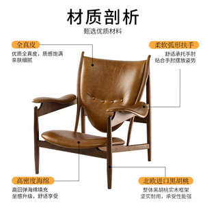 酋长椅实木单人沙发椅真皮仿古风意式极简风带扶手客厅书房休闲椅