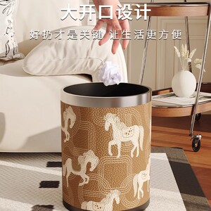 美式复古皮革垃圾桶家用客厅轻奢高档新款大号大容量卧室厨房纸篓