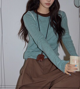 复古绿色圆领针织衫女2025秋新款高级气质修身显瘦长袖上衣