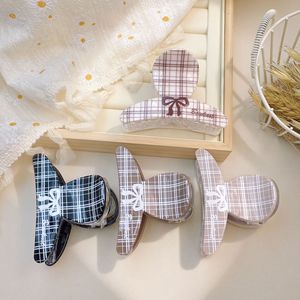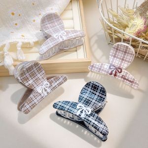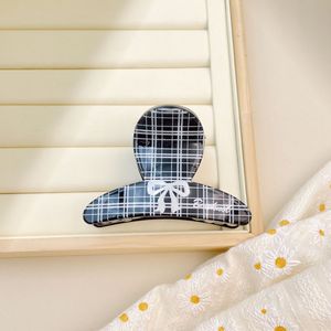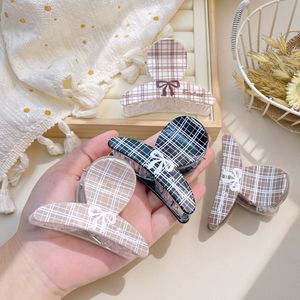 韩式格纹蝴蝶结中号抓夹百搭小众高级感鲨鱼夹时尚后脑勺盘发夹子