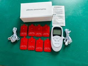 跨境爆品*双通道*全英文EMS多功能经络按摩仪充电脉冲家用蓝屏按