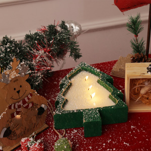 跨境木质圣诞树造型蜡烛香薰碗节日氛围感不规则香薰摆件面团碗