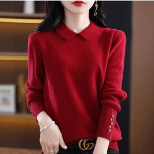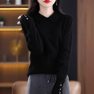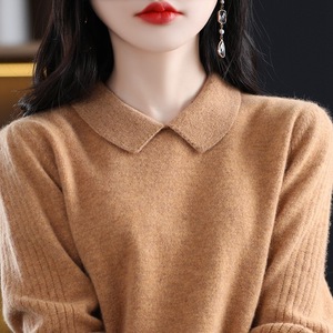女士针织衫套头2025年秋冬季新款娃娃领宽松毛衣洋气百搭打底上衣