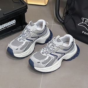 欧货厚底增高真皮网面透气老爹鞋女2025秋新款百搭显瘦休闲运动鞋