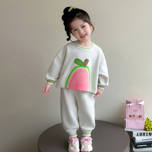 女童水果卫衣套装春秋装2025新款儿童装洋气宝宝时髦休闲运动衣服