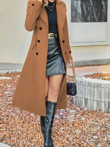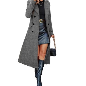 2025欧美跨境双排扣收腰显瘦中长款套里毛呢大衣气质翻领时尚百搭