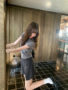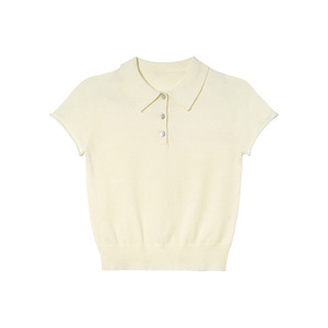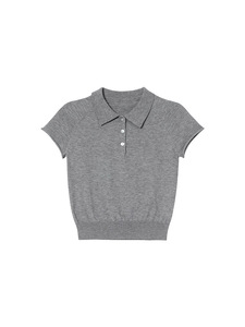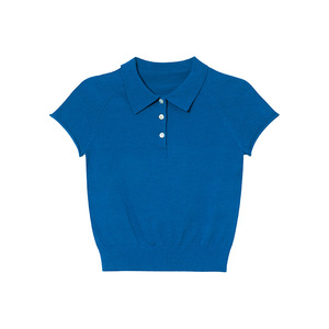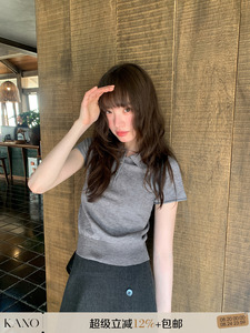 你好卡农 polo领插肩袖针织短袖t恤女夏2025新款修身简约短款上衣