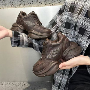 明星老爹鞋女2025秋冬新款真皮厚底轻便百搭增高显瘦小白鞋运动鞋