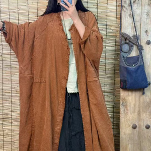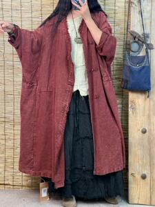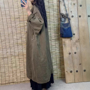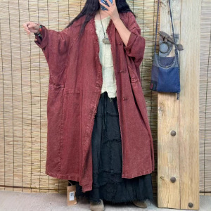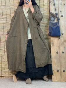 2025秋季新款复古百搭重工炒色做旧毛边加厚亚麻长款风衣