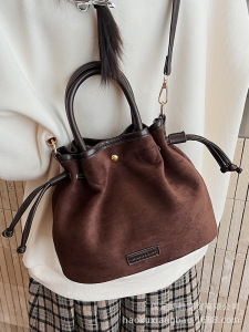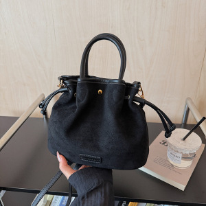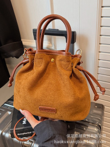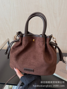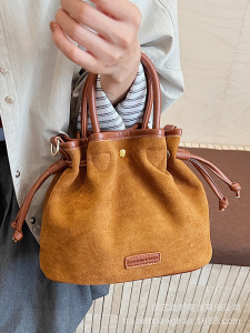 麂皮绒包包女秋冬季2025新款休闲磨砂复古斜挎单肩包高级感水桶包