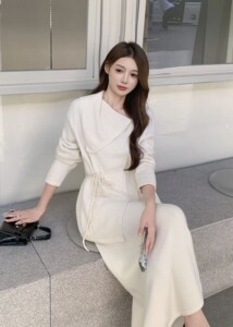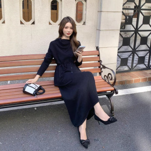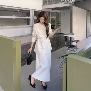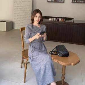 跨境秋冬新款气质收腰显瘦毛衣半身裙两件套设计感斜扣针织套装女