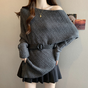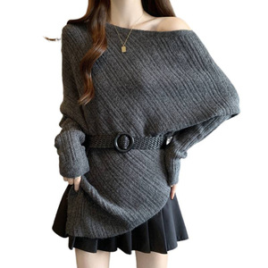 大码韩版2025秋季净色气质百搭简约圆领不规则套头绑带收腰上衣