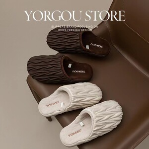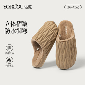 皱棉拖鞋女新款秋冬季室内家居防水保暖居家艾草皮拖男可外穿