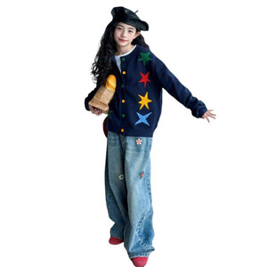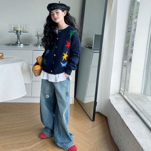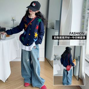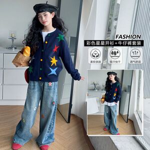 女童秋季两件套2545款星星毛衣小花牛仔裤套装