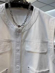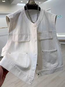 2025秋装新款韩版休闲宽松设计无袖牛仔马甲外套女雪尼尔氨纶其他