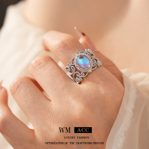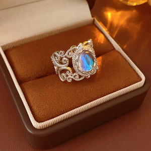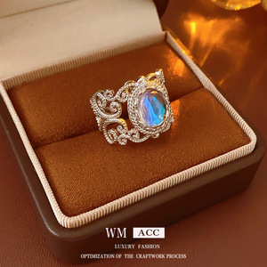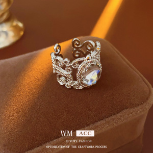 中古vintage椭圆树脂开口戒指小众高级感食指戒复古宫廷风手饰女