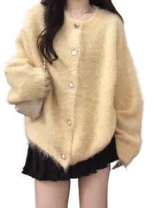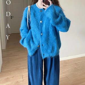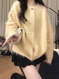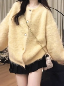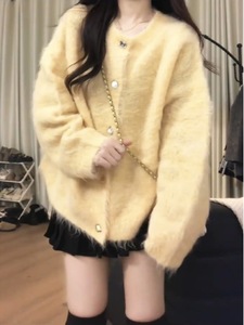 甜美奶黄色~温柔风软糯水貂绒针织开衫女秋季新款加厚单排扣外套