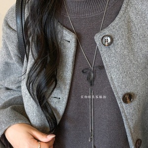 韩系蝴蝶结吊坠抽拉项链女气质长款挂脖毛衣链高级感百搭装饰配饰