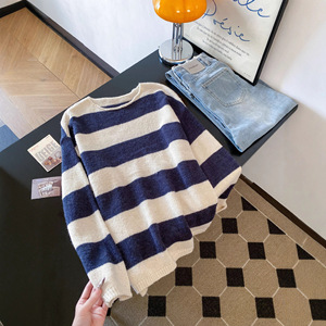十三行~慵懒风轻熟风茶歇秋季洋气条纹针织衫时尚名媛森系美式女