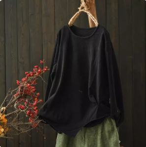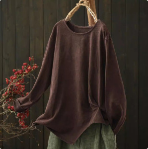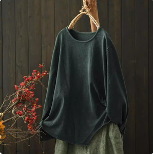 2025秋季复古炒色做旧休闲文艺宽松圆领棉大码T恤女长袖秋季新款