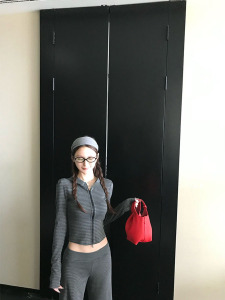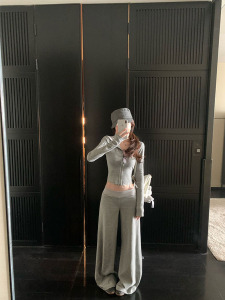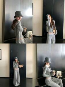慵懒周末~条纹修身正肩显瘦连帽卫衣休闲裤 韩系高级感25秋装套装
