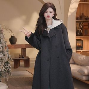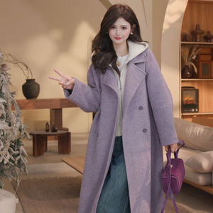 宽松气质百搭时尚中长款大衣女士秋冬款小个子双面毛呢大衣