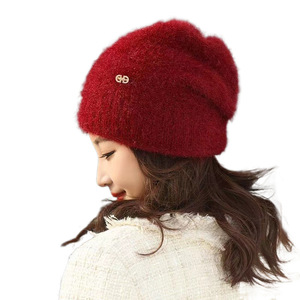女士新款松鼠绒堆堆帽秋冬帽子女冬季毛线手工编织帽百搭户外帽子