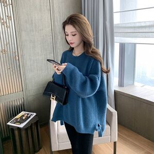 女士外穿针织上衣秋冬新款长袖针织打底衫网红设计感毛线宽松洋气