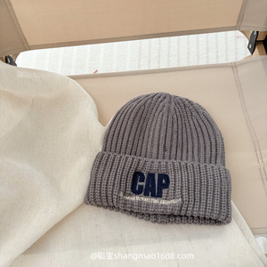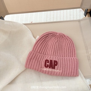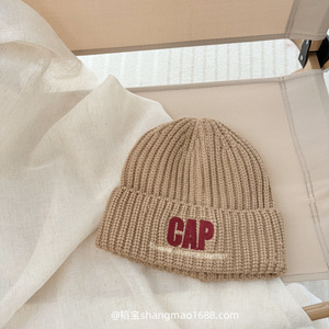 刺绣字母儿童破洞毛线帽男童女童保暖百搭针织帽秋冬宝宝毛线帽潮