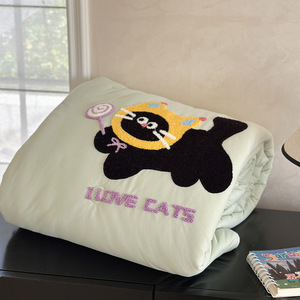 CELING秋冬款A类卡通针织棉毛巾绣可机洗单双人春秋冬被保暖加厚