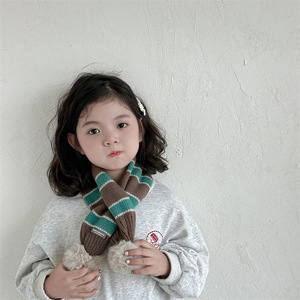 儿童围脖批发2025秋冬新款个性横条纹出行百搭保暖护颈交叉围巾