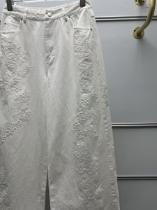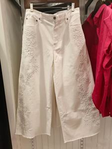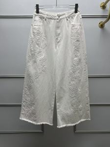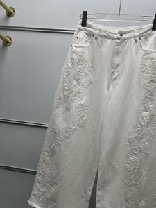 南油牛仔裤高品质复古重工镂空藤蔓刺绣九分裤休闲宽松阔腿牛仔裤
