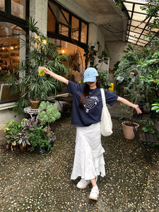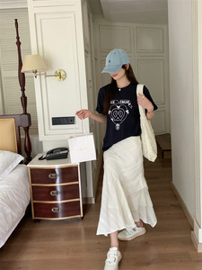 乌77感不规则白色半身裙女甜美少女蕾丝拼接高腰侧开叉鱼尾裙