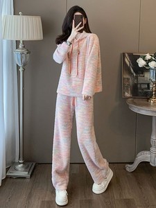 跨境慵懒风休闲运动套装女秋季时尚宽松连帽卫衣高腰阔腿裤两件套