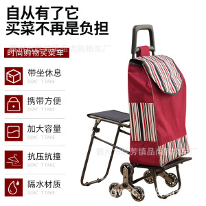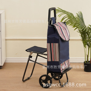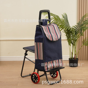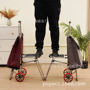 老年人买菜小拉车带凳子可坐超市购物小推车便携式拉杆小拖车工厂