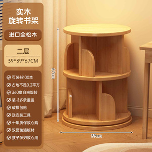 实木旋转书架360度学生储物柜客厅落地置物架卧室置物柜转角书柜