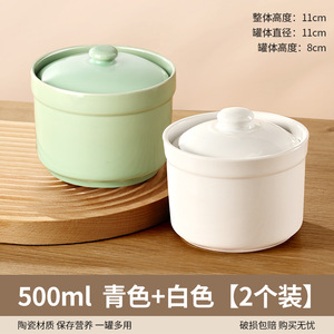 『特厚款』白+青【500ml】2个装直筒炖盅.