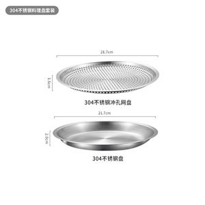 不锈钢圆盘带过滤网家用厨房烧烤油炸小吃滤油盘子冷却沥水盘