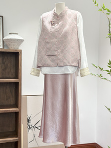 浅黄绿色新中式马甲年轻款国风立领改良高级感宋锦宽松盘扣女款秋