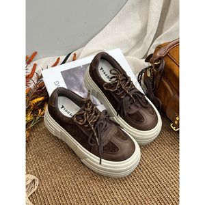 壹米恩擦色小白鞋女厚底2025秋冬新款真皮做旧百搭休闲增高板鞋女