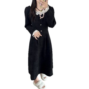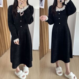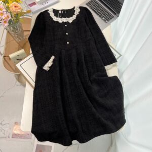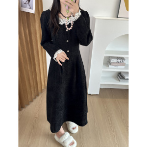 2025大码女装气质名媛方式蕾丝花边灯芯绒小香风连衣裙打底裙8206