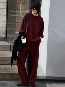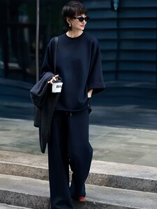 老钱风极简松弛感套装宽松版型休闲长袖T恤+阔腿裤两件套146