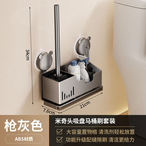 免钉贴:圆形(带接水盘)马桶刷-枪灰色