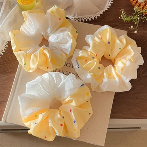 韩系星星波点黄色大肠发圈女低马尾头绳扎头发绳甜美可爱发饰皮筋