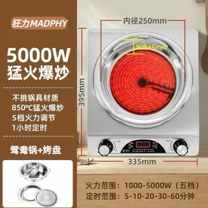 聚能凹面电陶炉5000W家用火锅炒菜多功能大功率商用电磁炉厂家