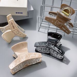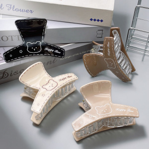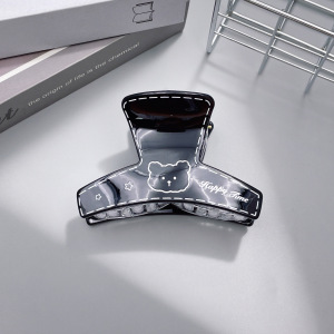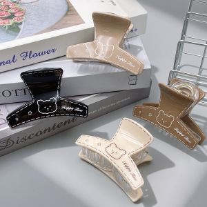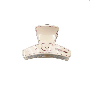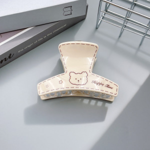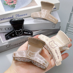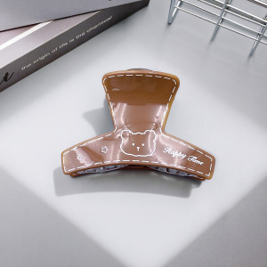 韩系印刷小熊图案抓夹奶茶色弧形鲨鱼夹中号百搭后脑勺盘发夹发抓
