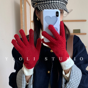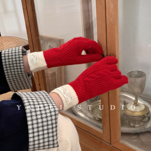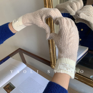 新款秋冬氛围感小8字麻花针织毛线手套女韩系保暖露指可触屏防寒