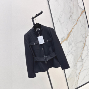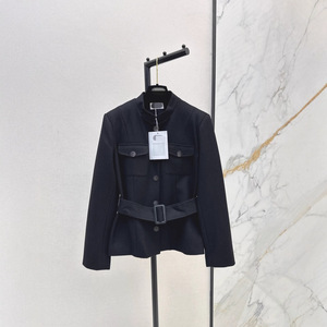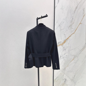 深圳南油新款时尚立领单排扣长袖细腰带收腰显瘦复古风羊毛呢外套
